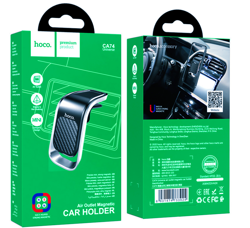 hoco. CA74 magnetic suction L-shaped car mobile phone bracket new air outlet mobile phone support car navigation lazy bracket