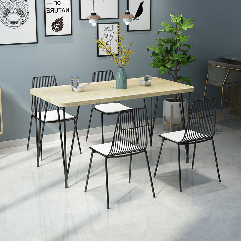 Rectangular Solid Wood Table Office Casual Home Students Modern Brief Desk Nordic Iron Art Dining Table And Chairs Combination