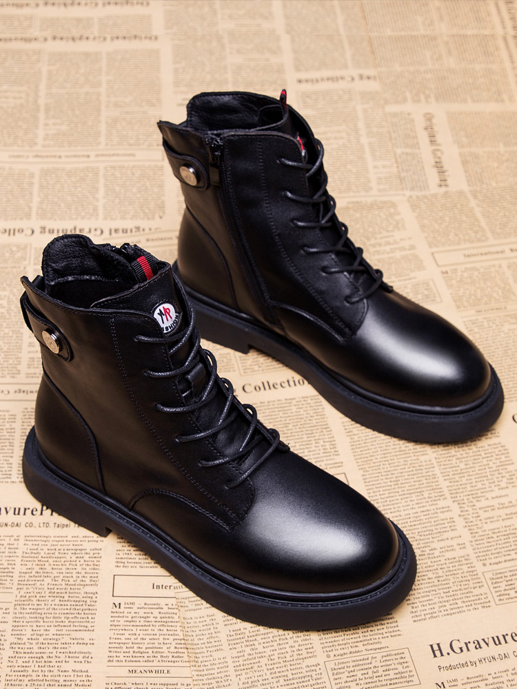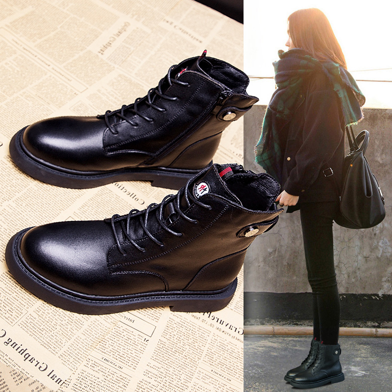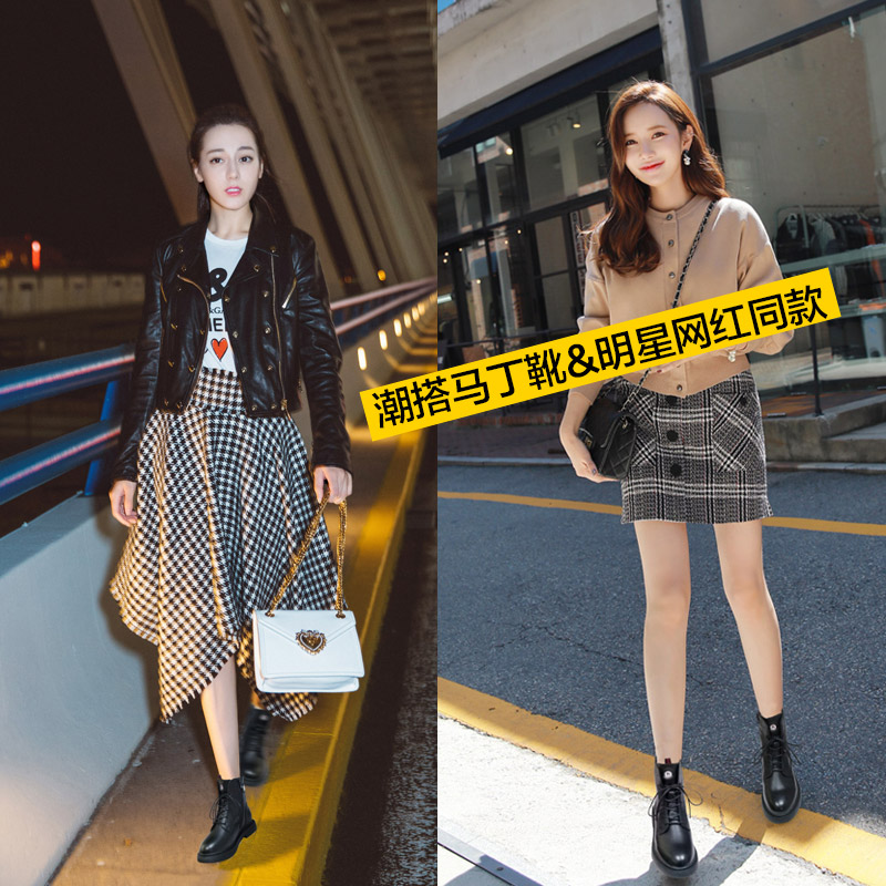 Yang Mi's same style Martin boots female British style leather 2022 new autumn and winter all-match inner heightening net red thick-soled ankle boots