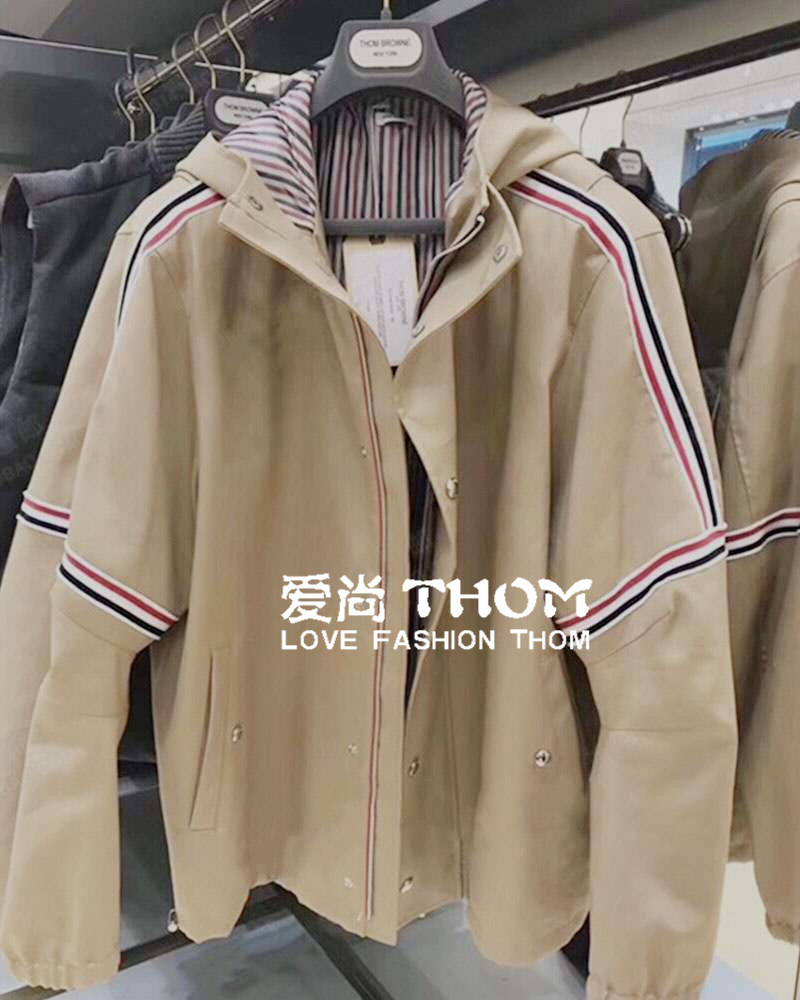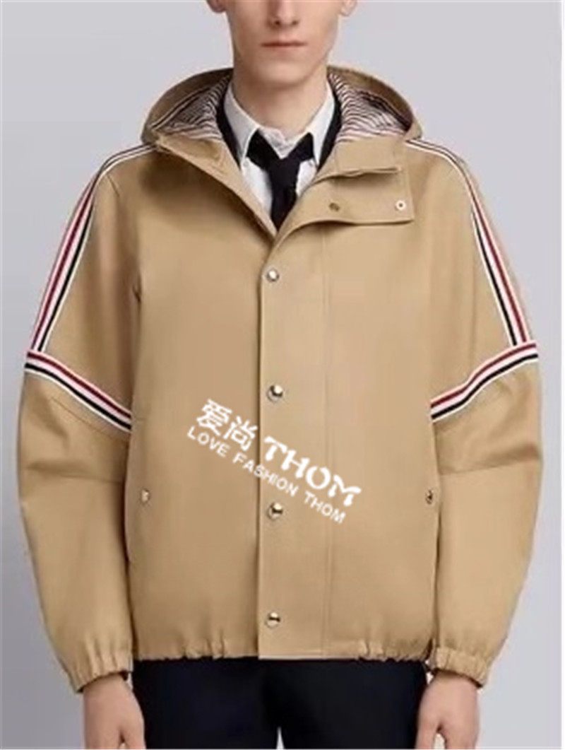 Thom bins coat tb shoulder color webbing metal buckle windproof hooded charge coat men's and women's browne