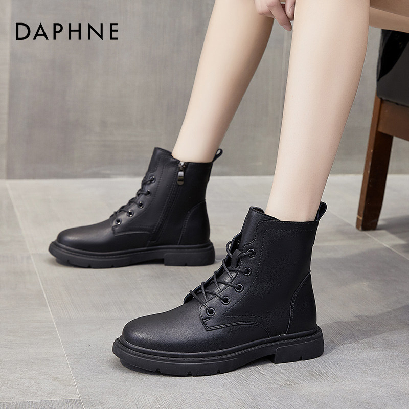 Daphne Martin boots female British style 2022 new winter velvet leather short boots fashionable western style boots tide
