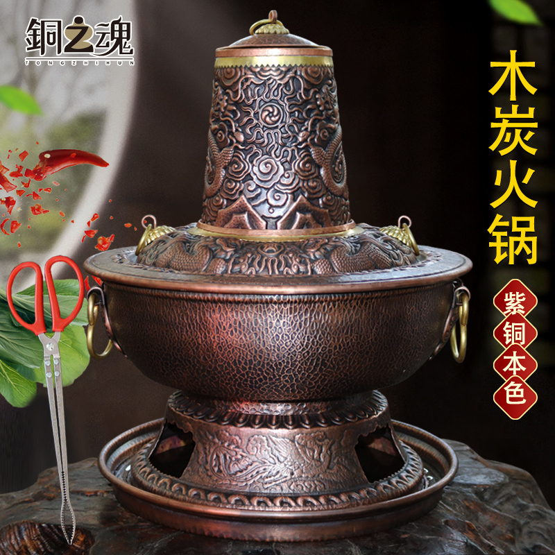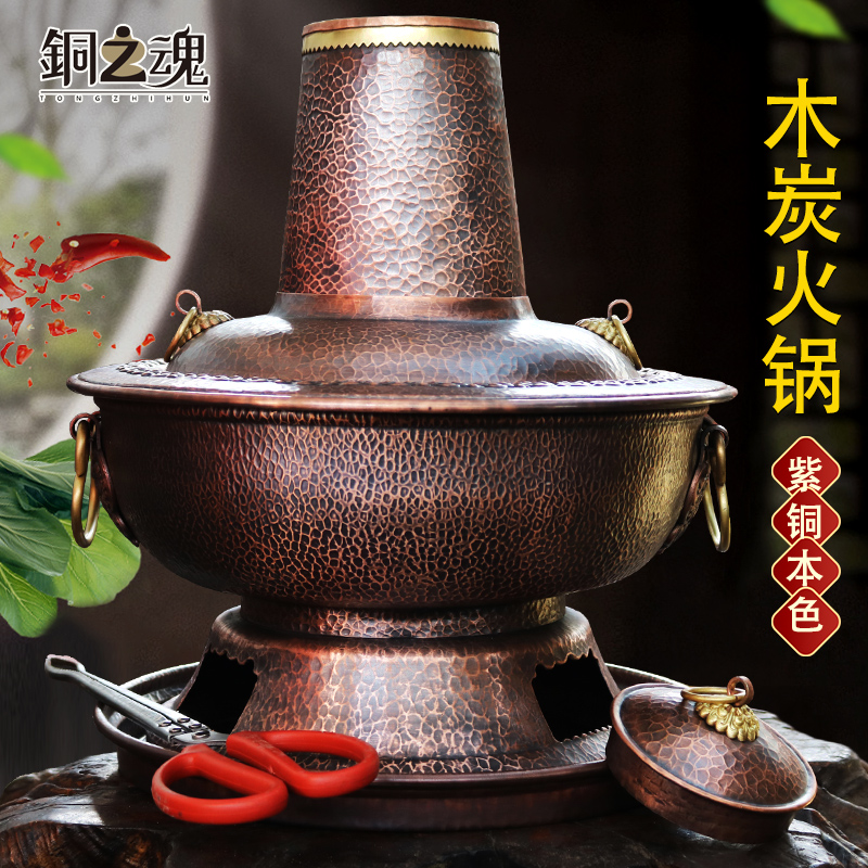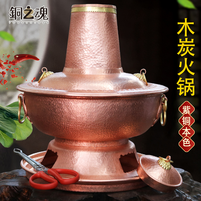 The Soul of Copper Copper Hot Pot Charcoal Pure Red Copper Retro Handmade Thickening Household Hot Pork Cooking Pot Old Beijing Tradition