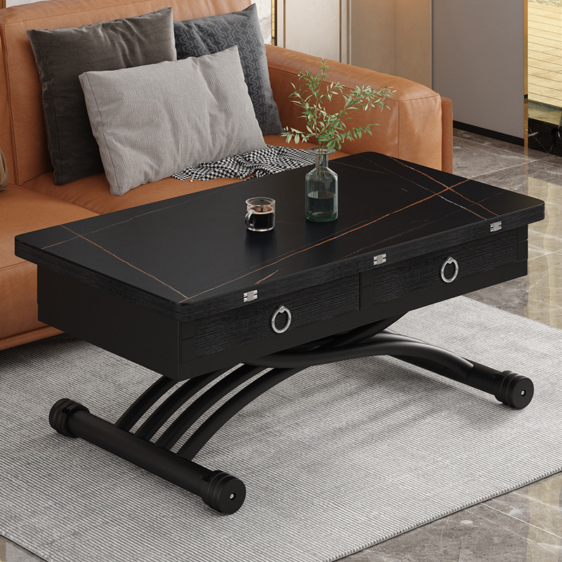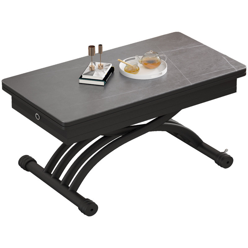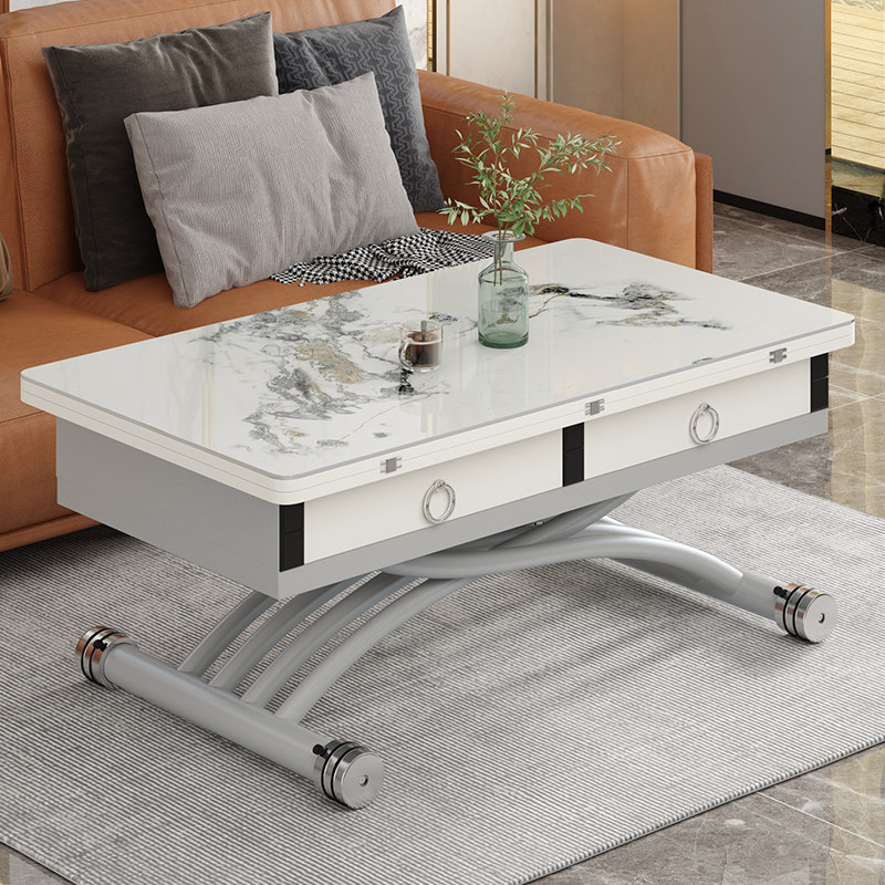 Lifting tea table dining table Dual-purpose one-piece small family type square home multifunction folding rock plate telescopic second change table