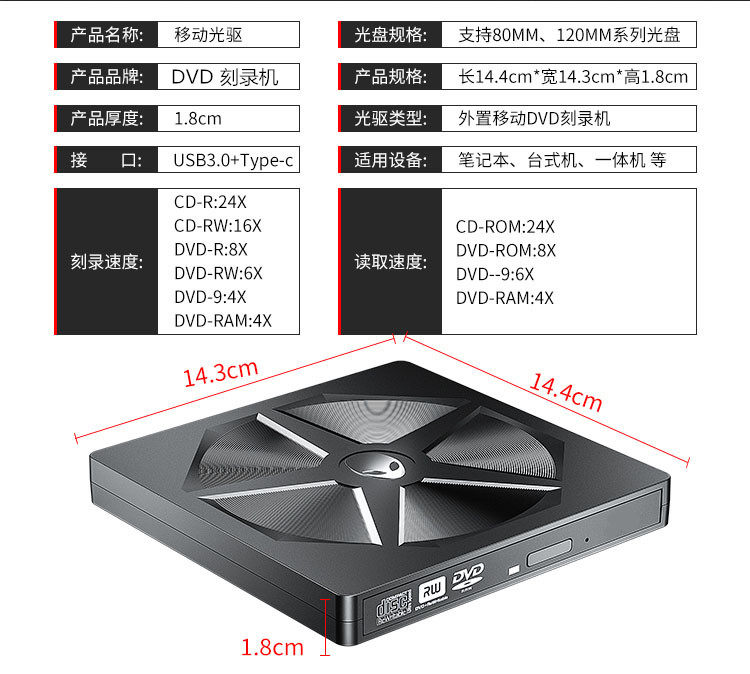 Alienware external USB3 0 Type-c DVD burner mobile external CD-ROM computer universal