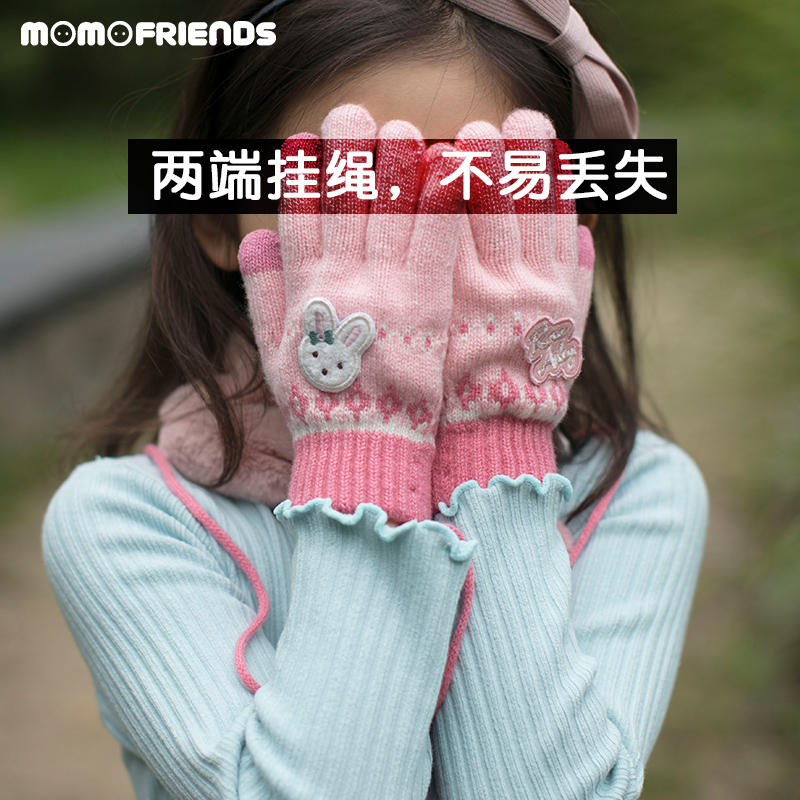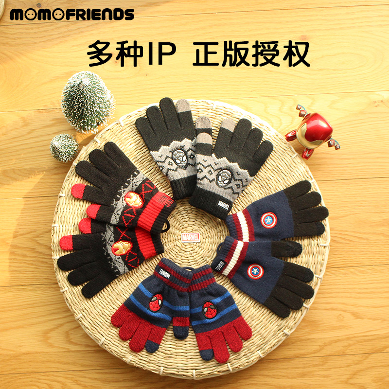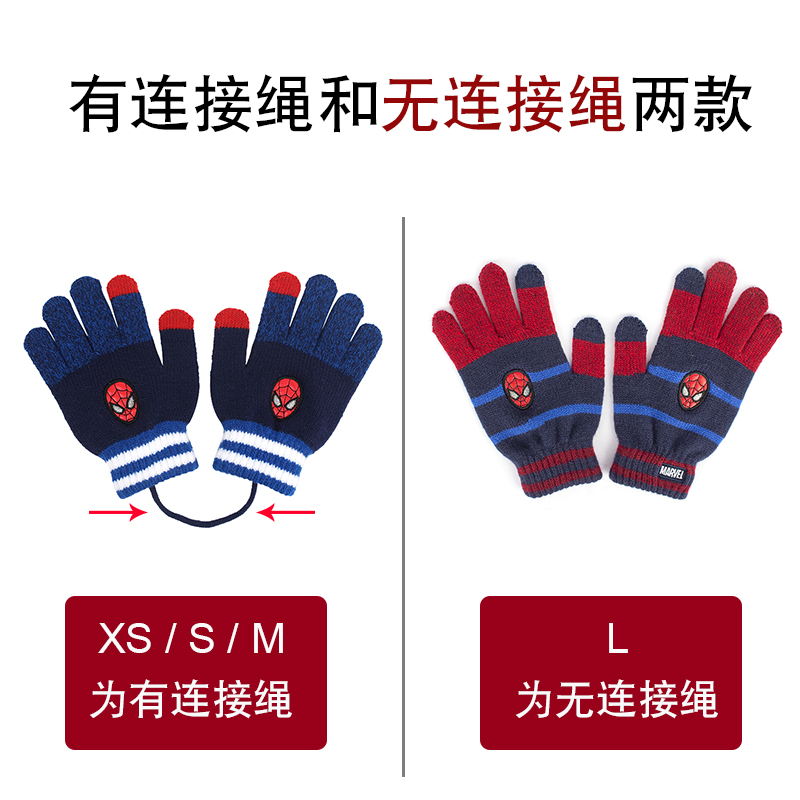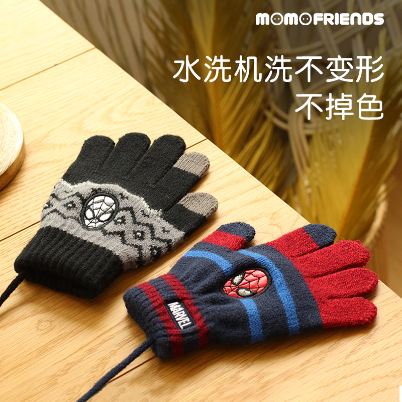 Wing house Official children's gloves Winter Spiderman Five means ice and snow chic edge male and female baby cute hair line