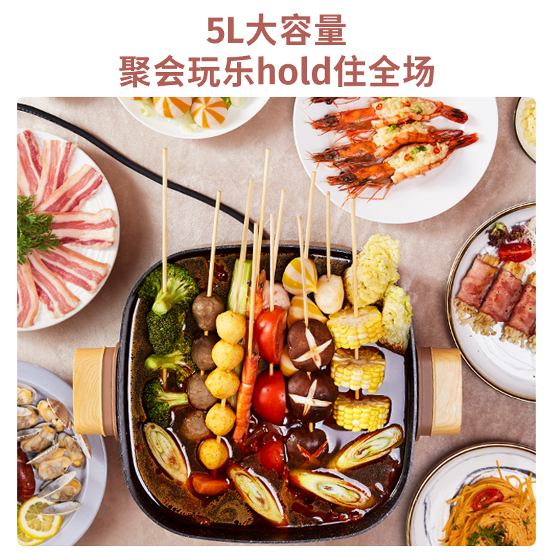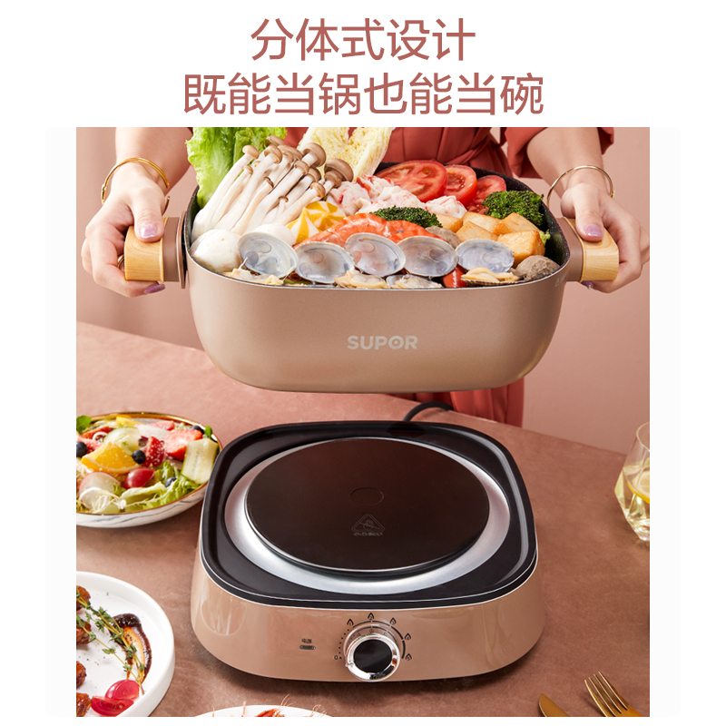 Supoir electric fire hot pot mandarin duck multifunction home two-piece plug-in electric hot cooking frying and frying and frying integrated pan