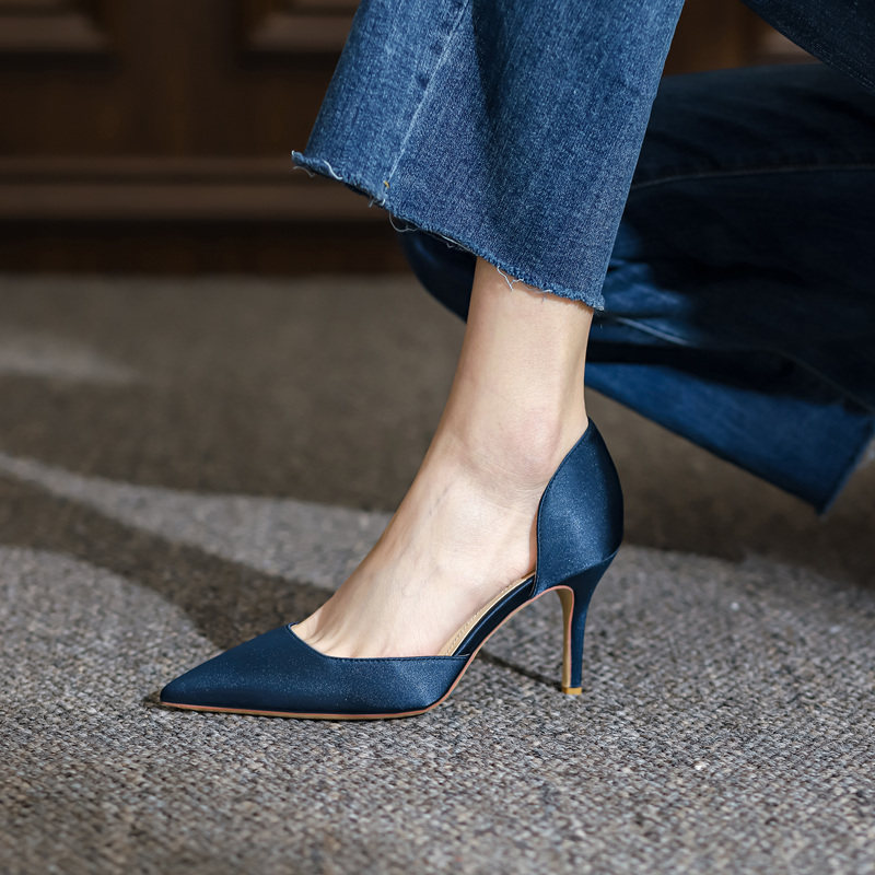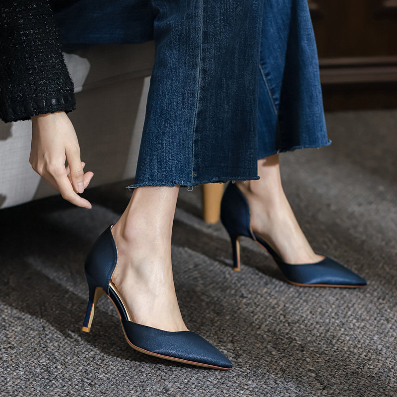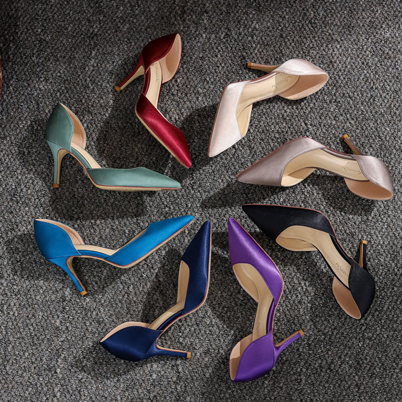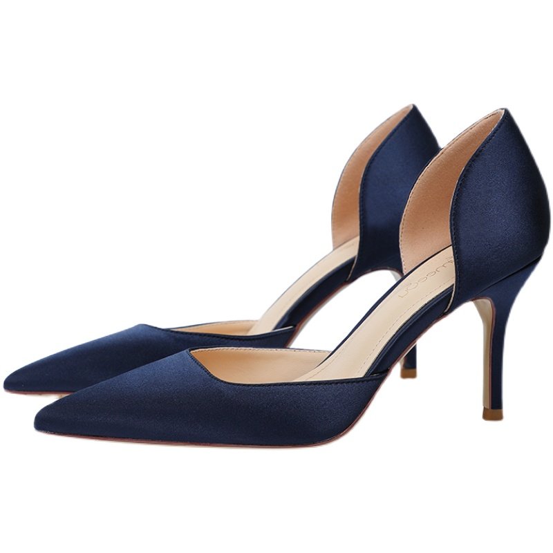 Formal commuter OL baybytes ~ high heels female pointed fine and satin shallow mouth of air quality single shoes