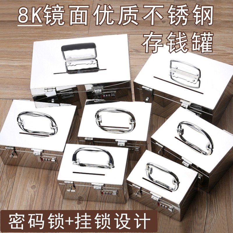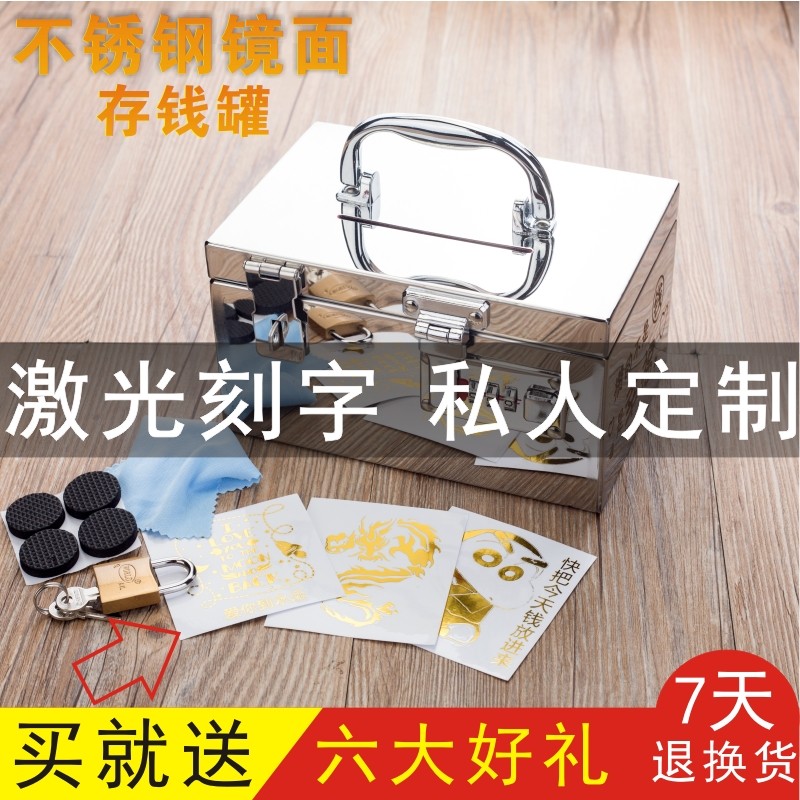 Personalized custom stainless steel children's piggy bank password box adult can deposit and withdraw household savings anti-fall net red