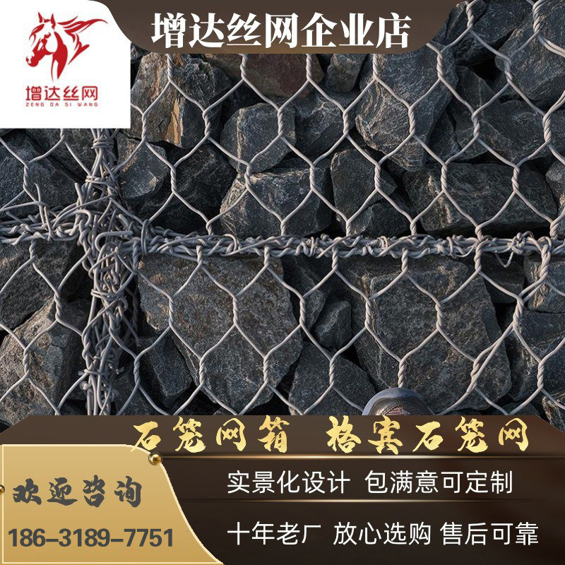 Gabion grid Binnet heavy-duty hexagonal twisted flower three-stranded section machine weaving network twisted-pair grid slope support angular cage