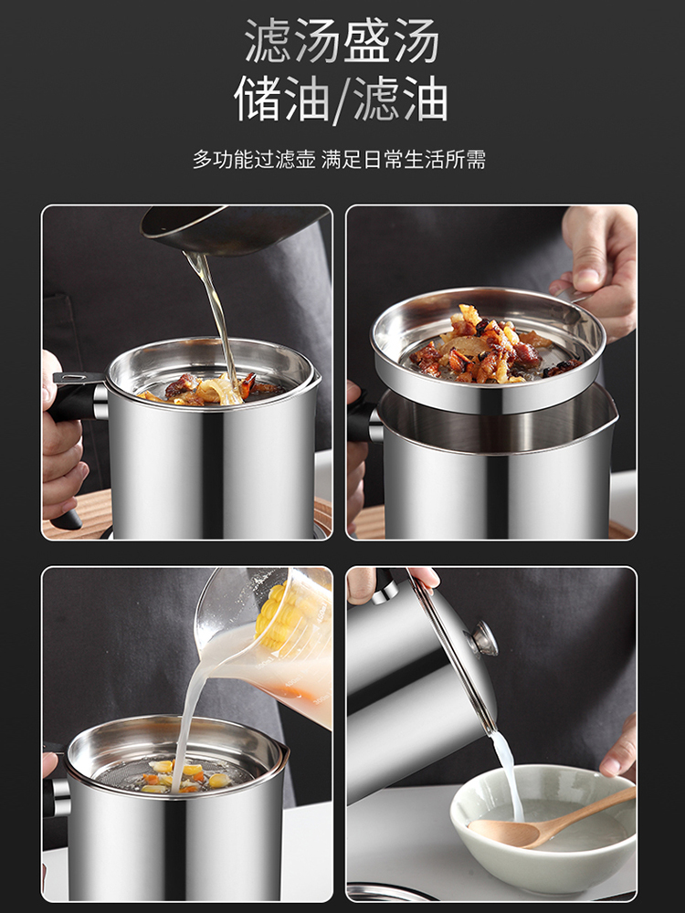 304 stainless steel oil filter cup household large capacity oil kettle kitchen with lid oil bottle with filter oil storage tank