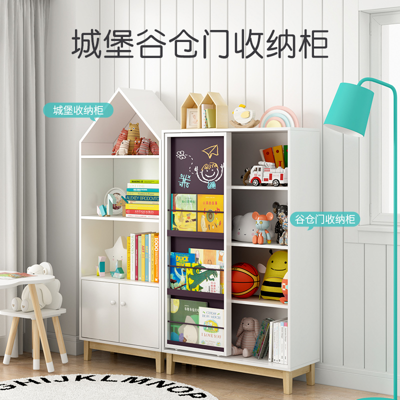Children's bookshelf with blackboard Picture book shelf Baby bookcase Floor-to-ceiling household finishing shelf Toy storage cabinet combination