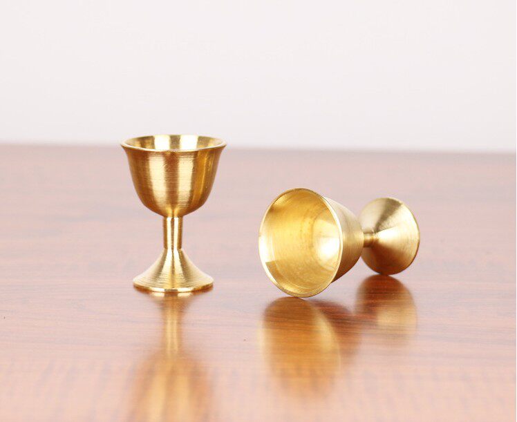Home Pure Copper High Foot Cup Small Wine Glass For Buddha's Worship With Water Cup Bronze Mug Drinking Pendulum Small Wine Punch