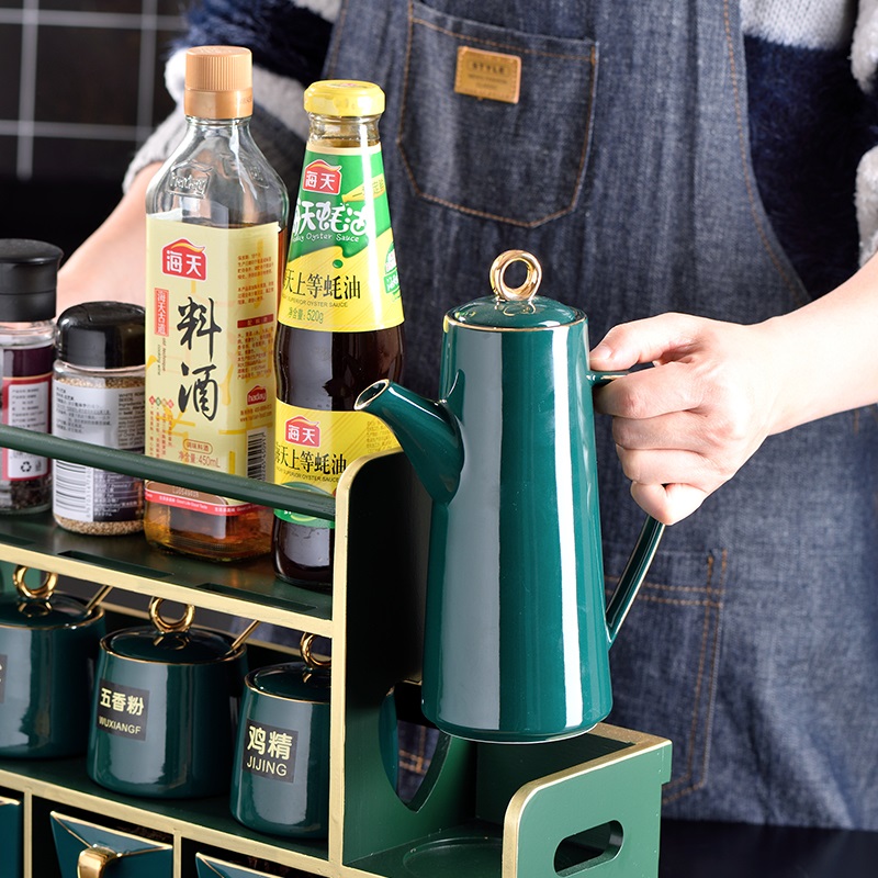 Europa Ceramic Concort Set Household Oil Bottle Oil Kettle Salt Salt Sauce Voice Search Box Combination