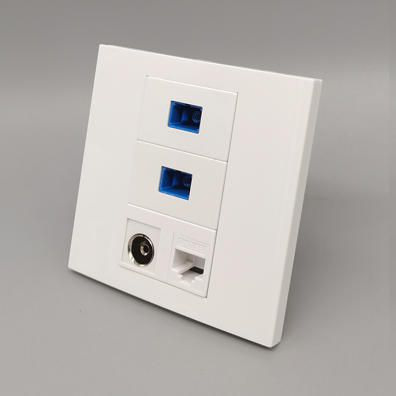 Type 86 three-bit dual-port SC optical fiber with TV network computer panel super five network cable broadband information socket