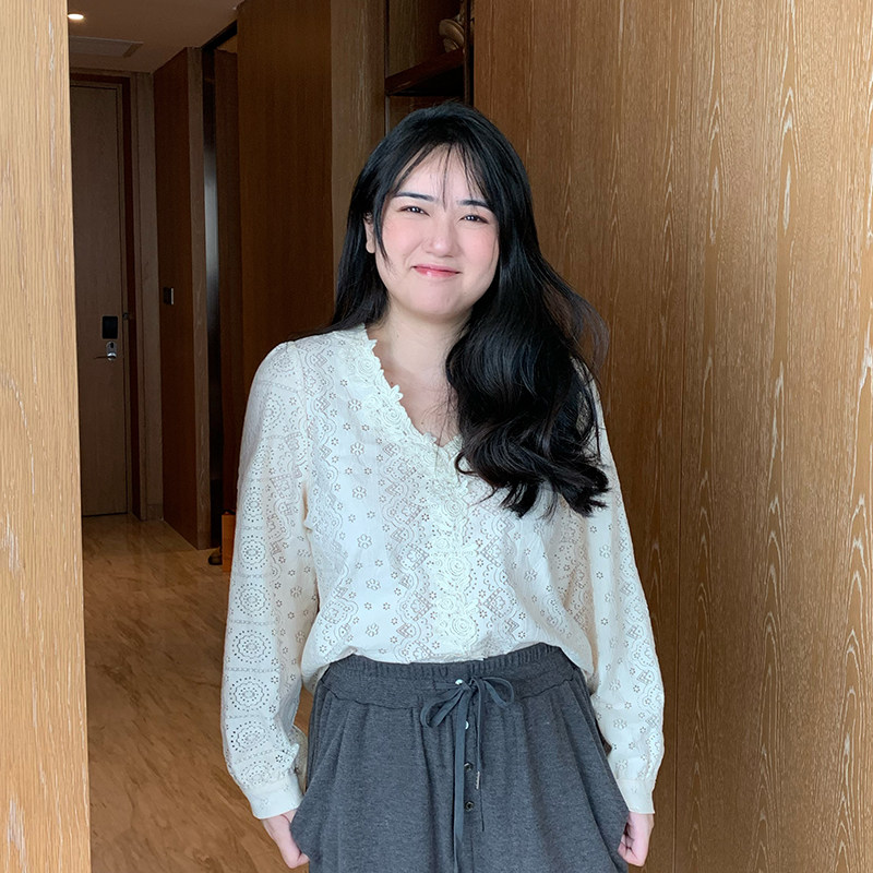 Toe tendons design sense sweet lace shirt women's long-sleeved 2020 autumn and winter new fat mm fashion foreign school thin top
