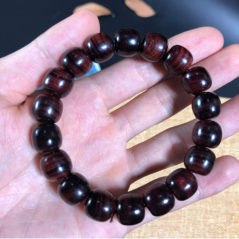 Purple oil pear hand string barrel beads round beads Hainan yellow pear men and women drop incense Sandalwood play old material Buddha beads hand bracelet