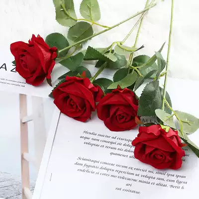 Simulation single rose bouquet fake flower silk flower dried flower Home decoration Living room bedroom dining table decoration Wedding photo