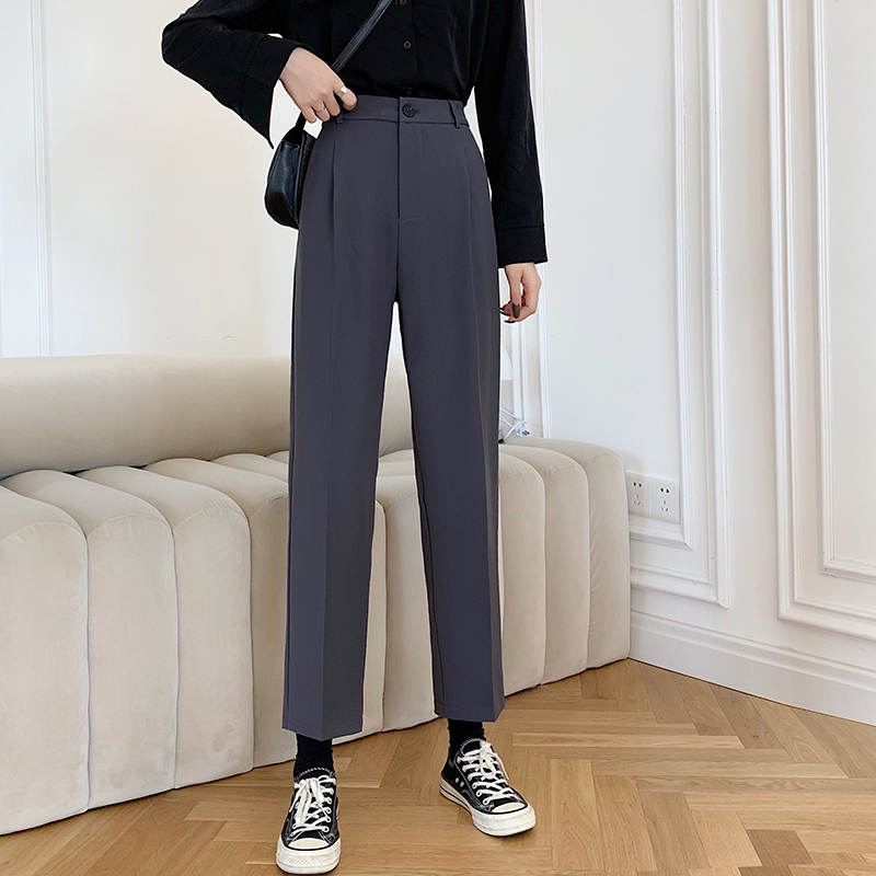 Spring 2022 New Western Pants Straight Barrel Wide Pants Early Spring Black High Waist Casual 90% Pants Display Slim Fit