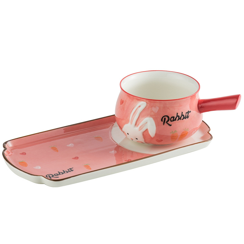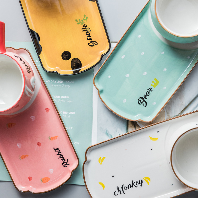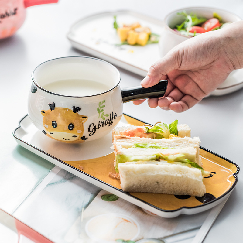 Love Beauty Cartoon Animal Pattern Breakfast Cutlery Sets Hand Painted Glazed Lower Color Ceramic Milk Pan Nursery 520ml
