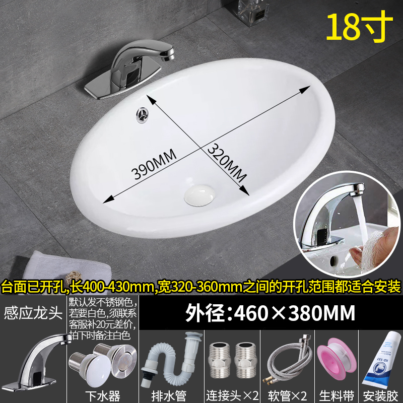 18-inch non-perforated basin without accessories 18-inch non-perforated basin Installation glue for the sewer pipe 18-inch non-perforated basin All accessories for silver round faucet