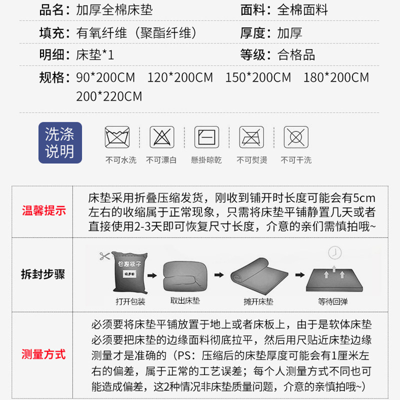 90 * 200cm (full cotton fabric thickened non-slip) 100 * 200cm (full cotton fabric thickened non-slip) 120 * 200cm (full cotton fabric thickened non-slip