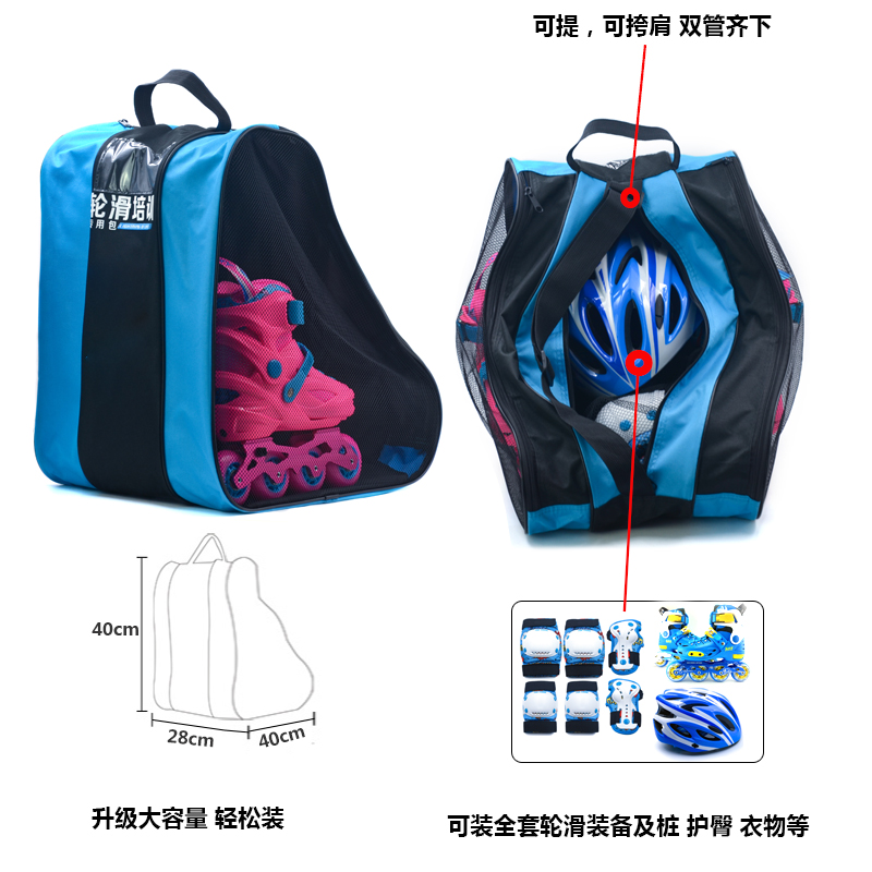 Children Wheel Skating Shoes containing Pack Skate Three Layers Mesh Bag Single Shoulder Bag Straight Line Pulley Bag Thickened breathable Large Capacity
