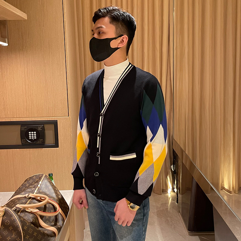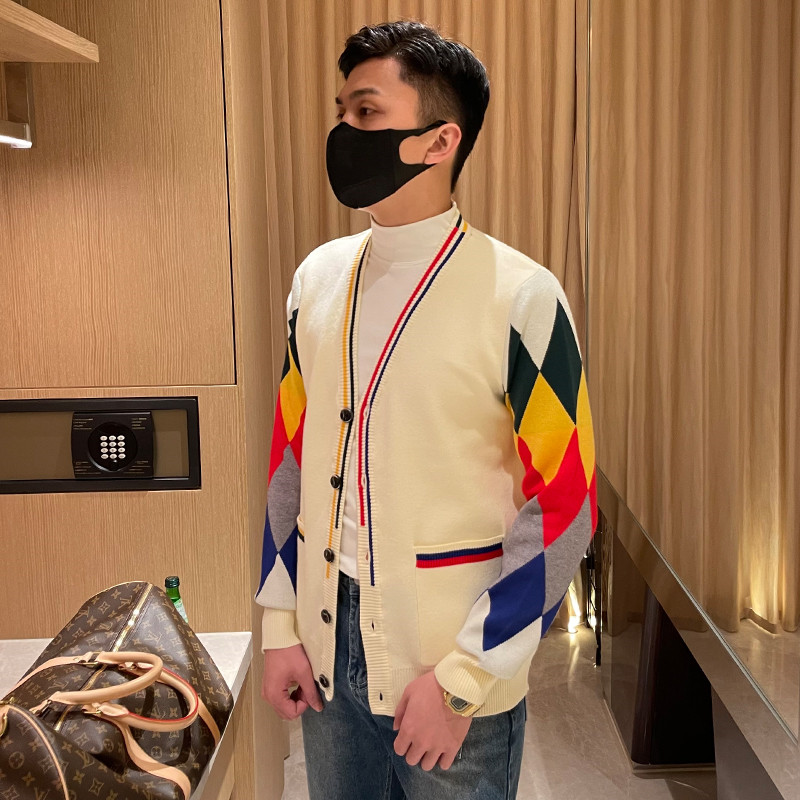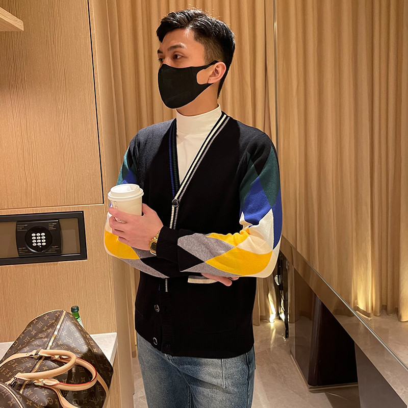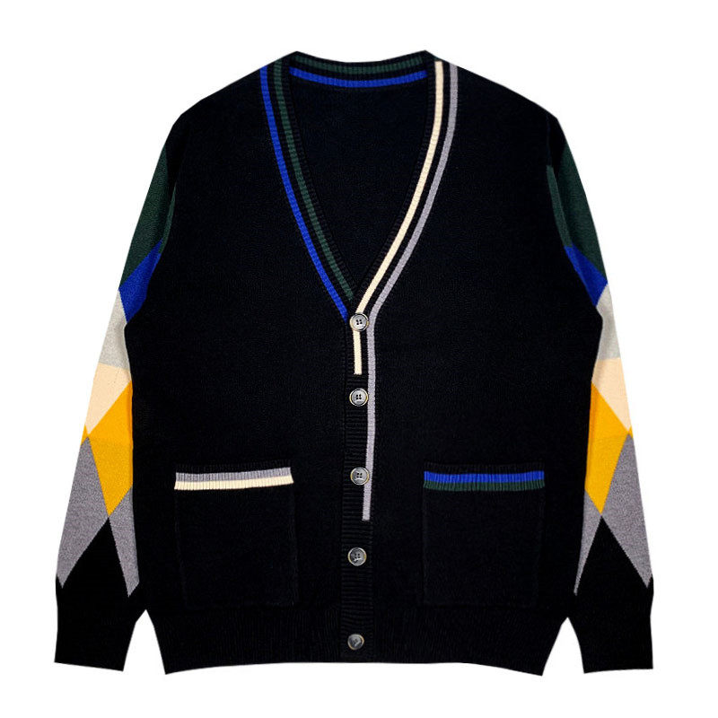 Korean Version Trendy Collage Design Men's Knitted Cardiovert 23 Autumn Winter Retro College Wind Casual Sweater Jacket Male Tide