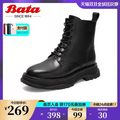 Bata thick-soled Martin boots female ins tide winter New British breathable flat soft bottom boots 09B19DD0