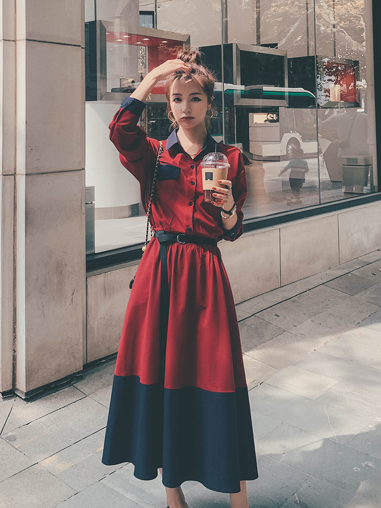 Lecea Alice red dress 2022 spring new temperament celebrity design sense niche slim long skirt