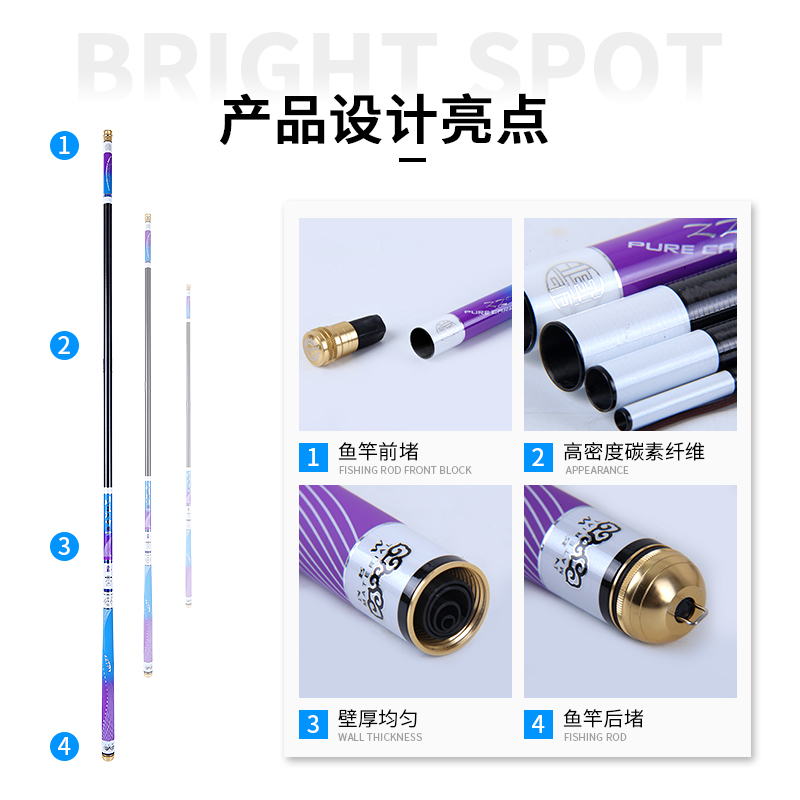zztpy Pacific Fire Blue Blade Fishing Rod Hand Rod Ultra Light Super Hard Fishing Rod Imported Carbon Fishing Rod Fishing Rod