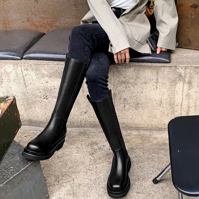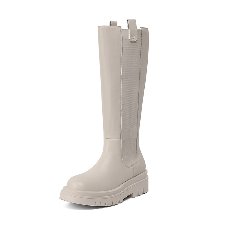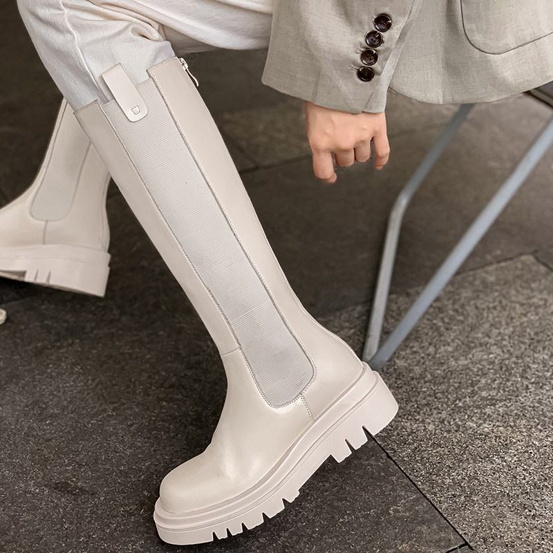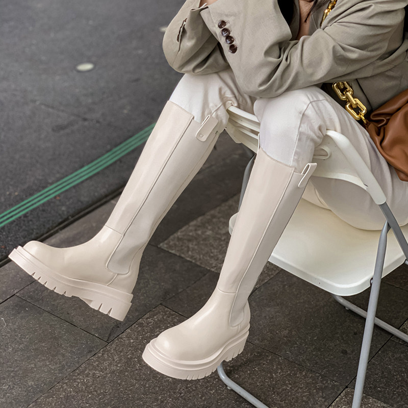 White long boots women's autumn and winter new thick-soled leather riding boots stovepipe chimney but knee-high Martin boots tide