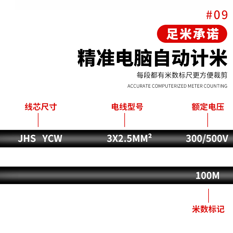 Submersible submersible deep water well underwater lamp waterproof corrosion protection against acid pH pure copper special waterproof cable JHS 2X1 squared (1 m) JHS 2X1 5 squared (