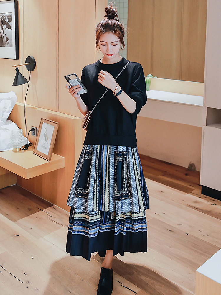 Lecea Alice ethnic style dress 2022 autumn loose retro slim design small long skirt