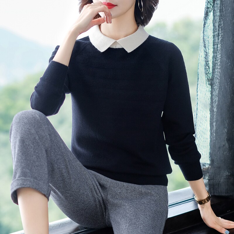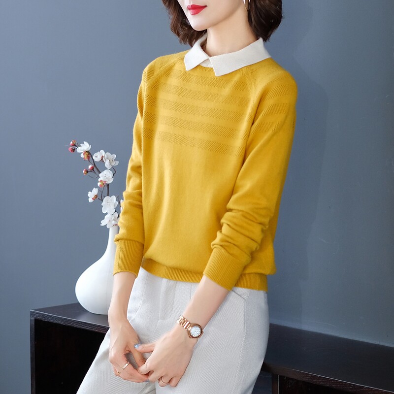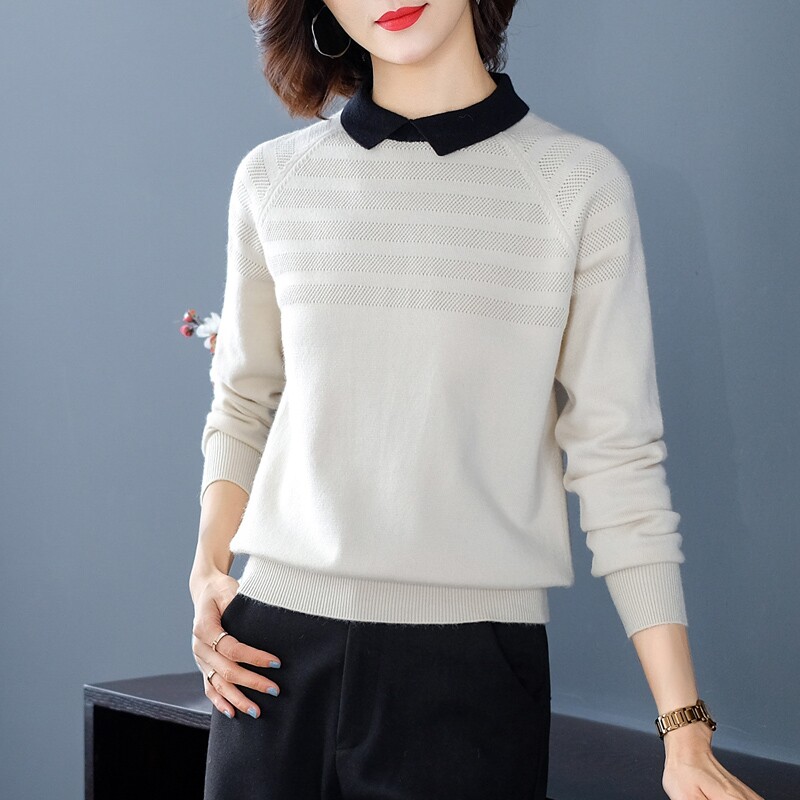 Dittudun Autumn Clothing 2021 New Dolls Collar Lady Sweater Outside Wearing Blouse Long Sleeve 100 Hitch Knit Undershirt