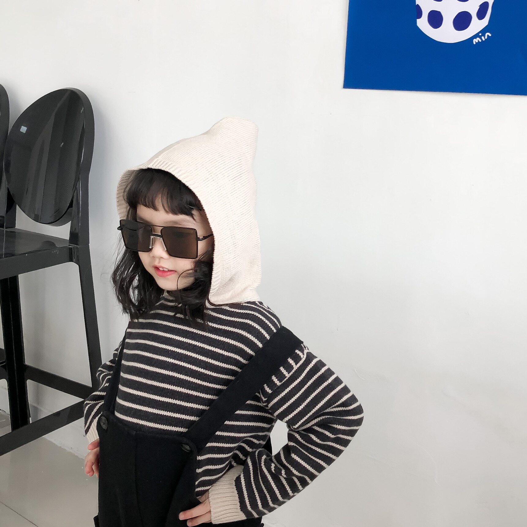 Girls hooded sweater striped knitted loose 2022 new autumn and winter thickened foreign style baby children's Korean winter clothes