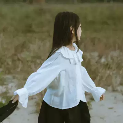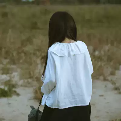 Pawpaw Liu Original Design Girls ' Shirt Bud Sleeve 2020 New Japanese solid color doll collar shirt