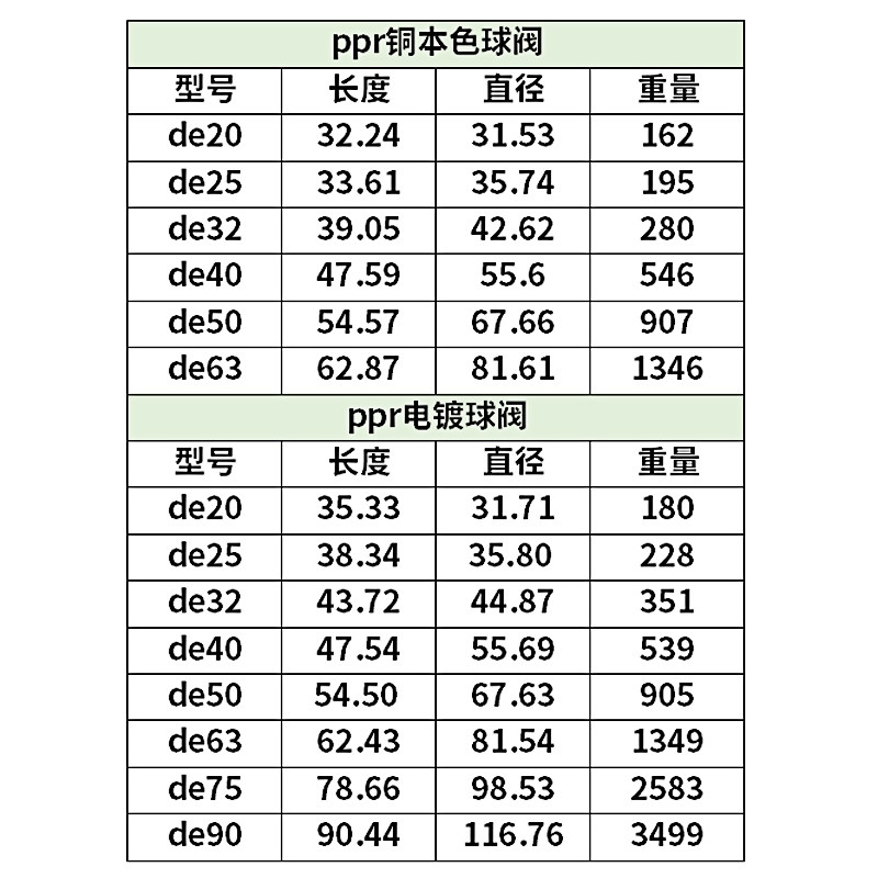 20 (4 points) copper natural color ppr ball valve 25 (6 points) copper natural color ppr ball valve 32 (1 inch) copper natural color ppr ball valve 40 (1 2 inches) copper natural color ppr ball valve 50