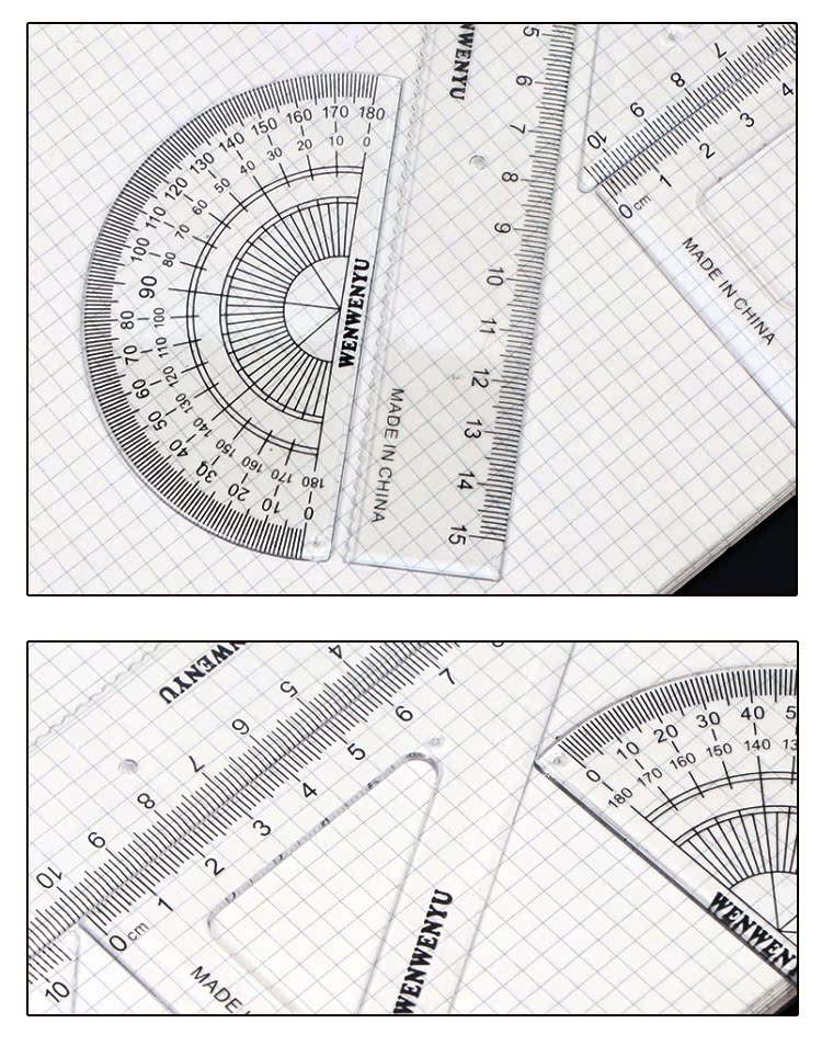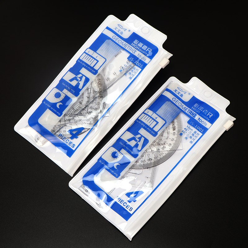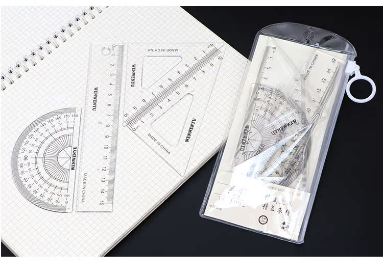 Triangular plate elementary school children's sleeve ruler Protractor triangular ruler suit of four sets of transparent drawing scale measurement