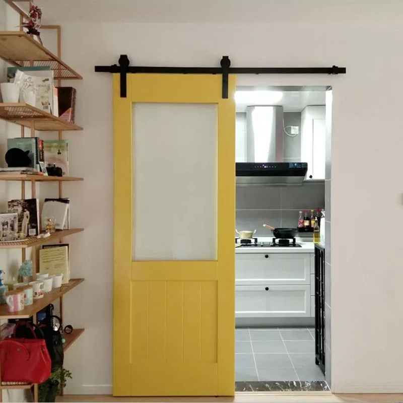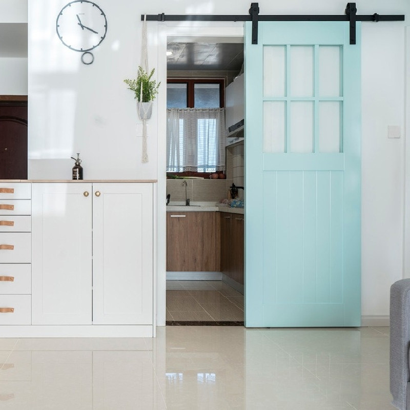Barn door kitchen Nordic hanging rail sliding door simple solid wood door bedroom door bathroom bathroom sliding glass door