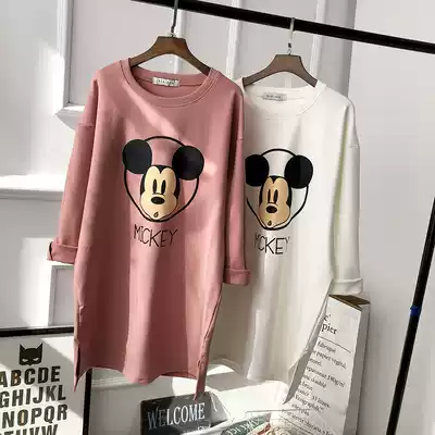 Cotton long sleeve T-shirt women's coat medium and long version spring and autumn loose large size Korean tide ins base shirt autumn and winter plus Velvet