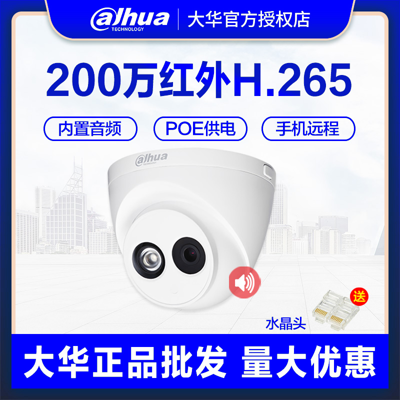 Dahua 2 million POE network surveillance camera lens HDW1230C-A audio mobile phone remote DH-IPC-T12