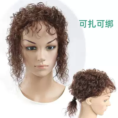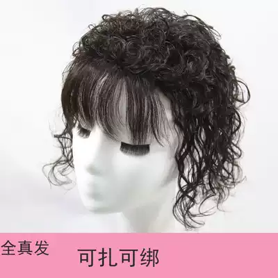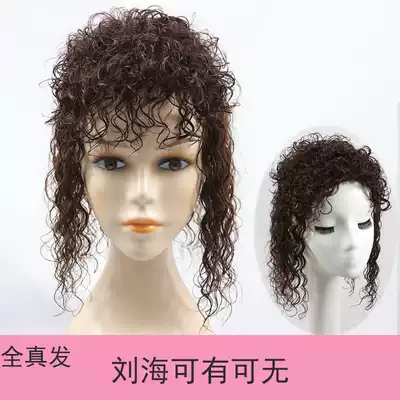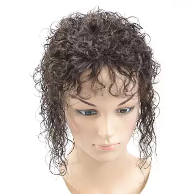 Wool curly wig women's head hair replacement natural fluffy real hair invisible hair top cover white hair Mother curly hair
