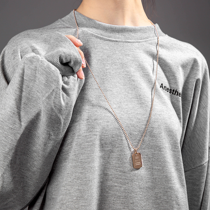 Titanium Steel Wool Dressing Chain 2021 New Tide Long Version Hip Hop Fashion Square Card Not Fading Decorative Necklace Women Summer