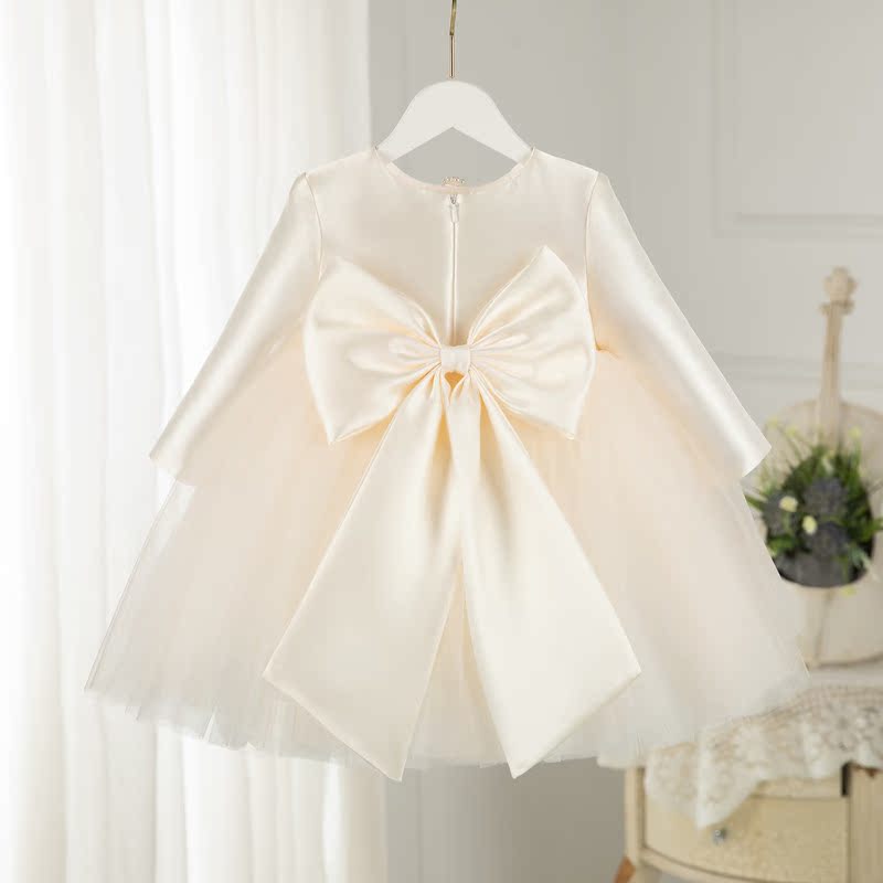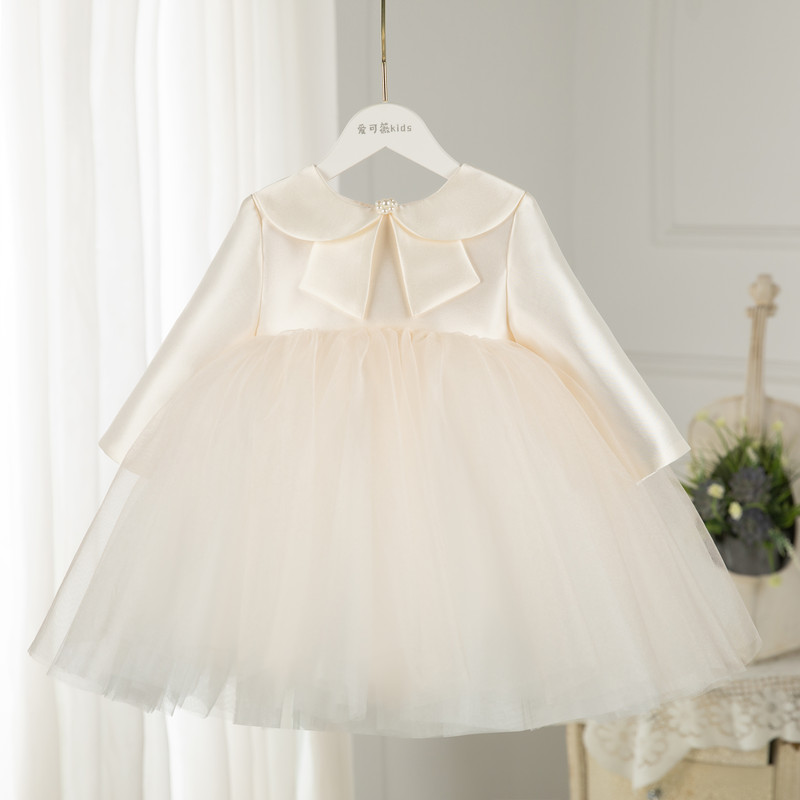 Year Old Female Baby Dress Princess Dress Champagne Satin Baby Little Wedding Dress Custom High-end Foreign Pie 1-2