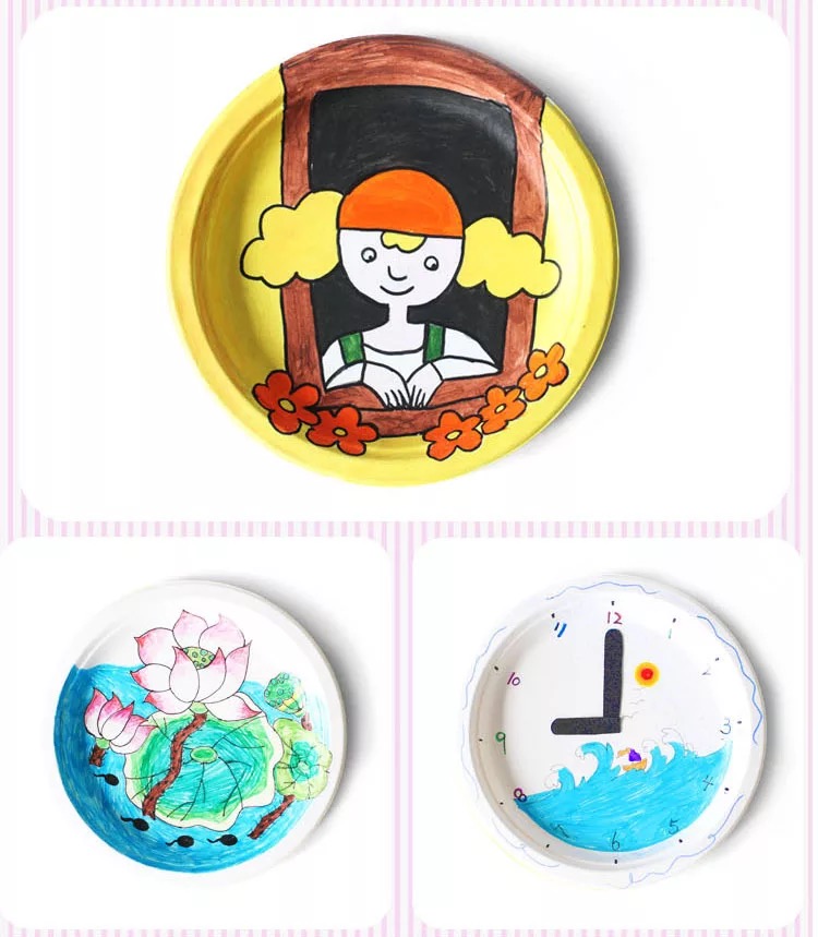 Kindergarten Handmade Material Blank Dishes Children Painting Clock Natural Parquet Read Turntable Making Small Handmade Accessories