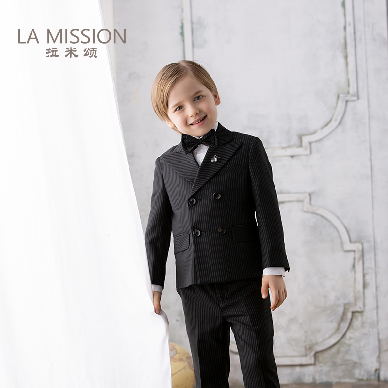 Spring and autumn wool blend black and white striped boy suit children piano performance host dress baby suit