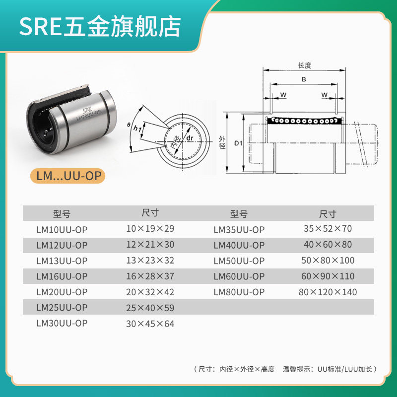 SRE Original imported large opening linear bearing LM12 13 16 20 25 30 35 40 50UUOP