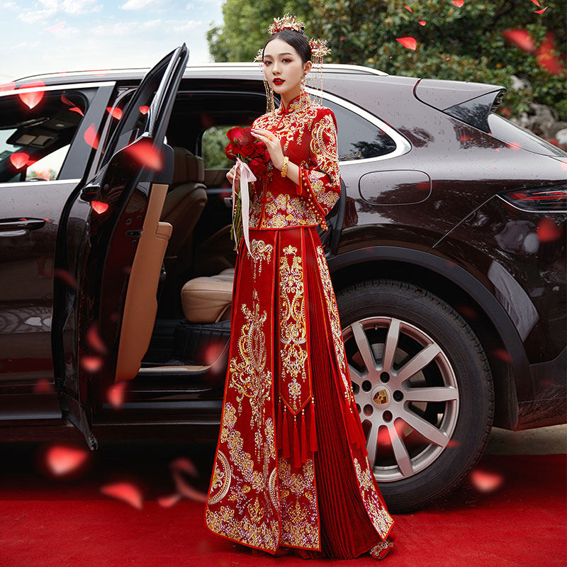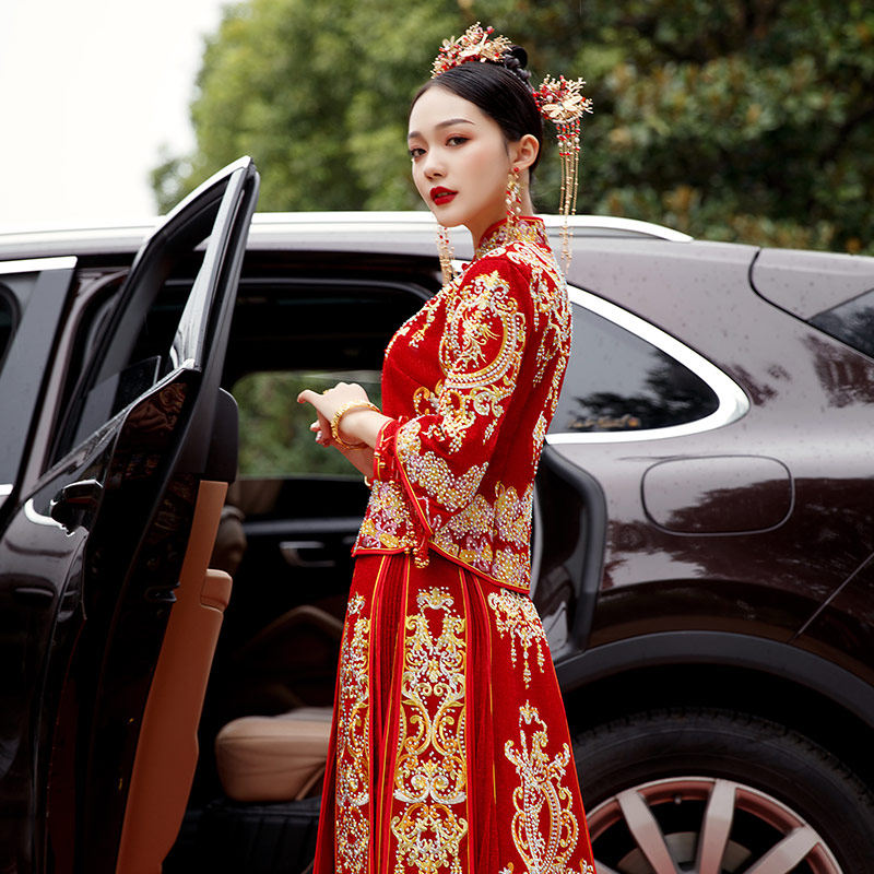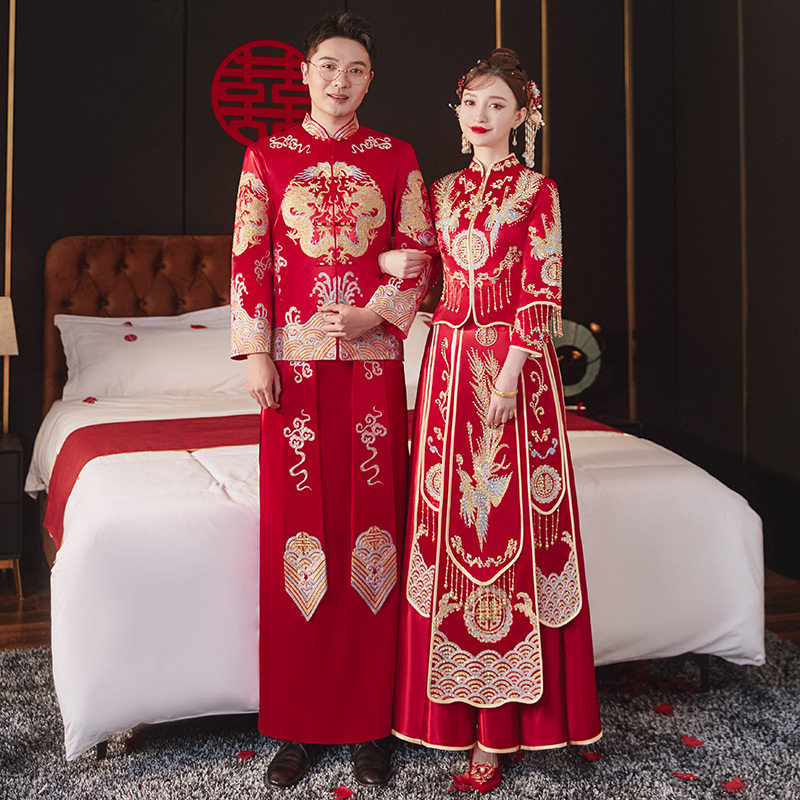 Show He Dress 2022 Bride New Couple Set Wedding Women's Chinese Dress Out Pavilion Dress Wedding Dress 2021 Show Kimono
