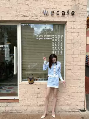 LDTJ temperament socialite 2020 new knitted shirt women sexy age age Plaid cardigan jacket hip skirt set