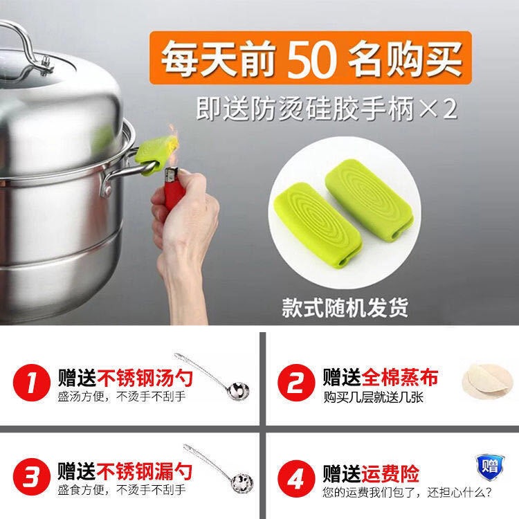 Extra thick Wangwang steamer 26cm extra thick Wangwang steamer 28cm extra thick Wangwang steamer 30cm extra thick plus high upgrade version 26cm extra thick plus high upgrade version 28cm extra thick plus height upgrade version 26cm two layers of thick plus height upgrade version 28cm two layers of thick plus height upgrade version 30cm two layers of purchase collection, damage package loss! Add to the collection and get a five-piece set of gifts!